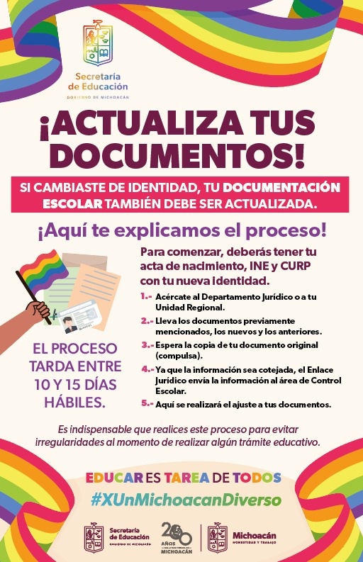 Morelia, Michoacán, a 22 de junio de 2024.- La Secretaría de Educación del Estado (SEE) hace un llamado a las personas que han cambiado de identidad de género para que actualicen también su documentación ... Leer más >>