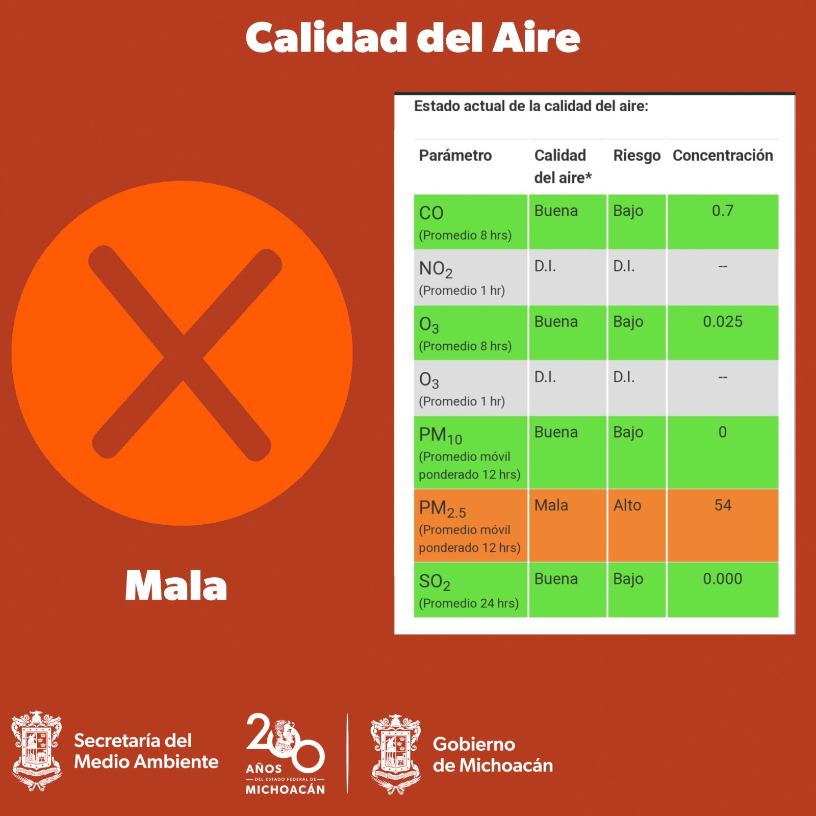 Morelia, Michoacán, a 08 de mayo de 2024.- Debido a la temporada de incendios, este miércoles la ciudad de Morelia presenta nuevamente una mala calidad del aire, de acuerdo a los datos del Sistema Nacional de Información de ... Leer más >>
