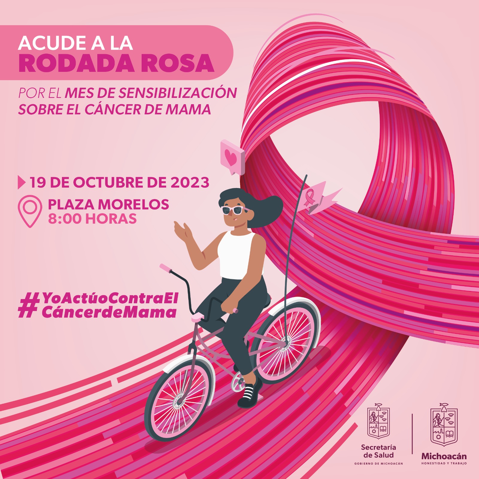 Morelia, Michoacán, a 12 de octubre de 2023.- La Secretaría de Salud de Michoacán (SSM) invita a la población a participar en la rodada rosa y la Feria de la Salud de la Mujer, que realizará el próximo jueves 19 ... Leer más >>