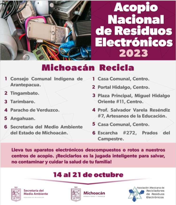 Morelia, Michoacán, a 12 de octubre de 2023.- Los aparatos eléctricos o electrónicos no deben parar en los rellenos sanitarios porque tienen componentes que pueden ser reciclados, y un mal destino de los mismos puede generar contami ... Leer más >>