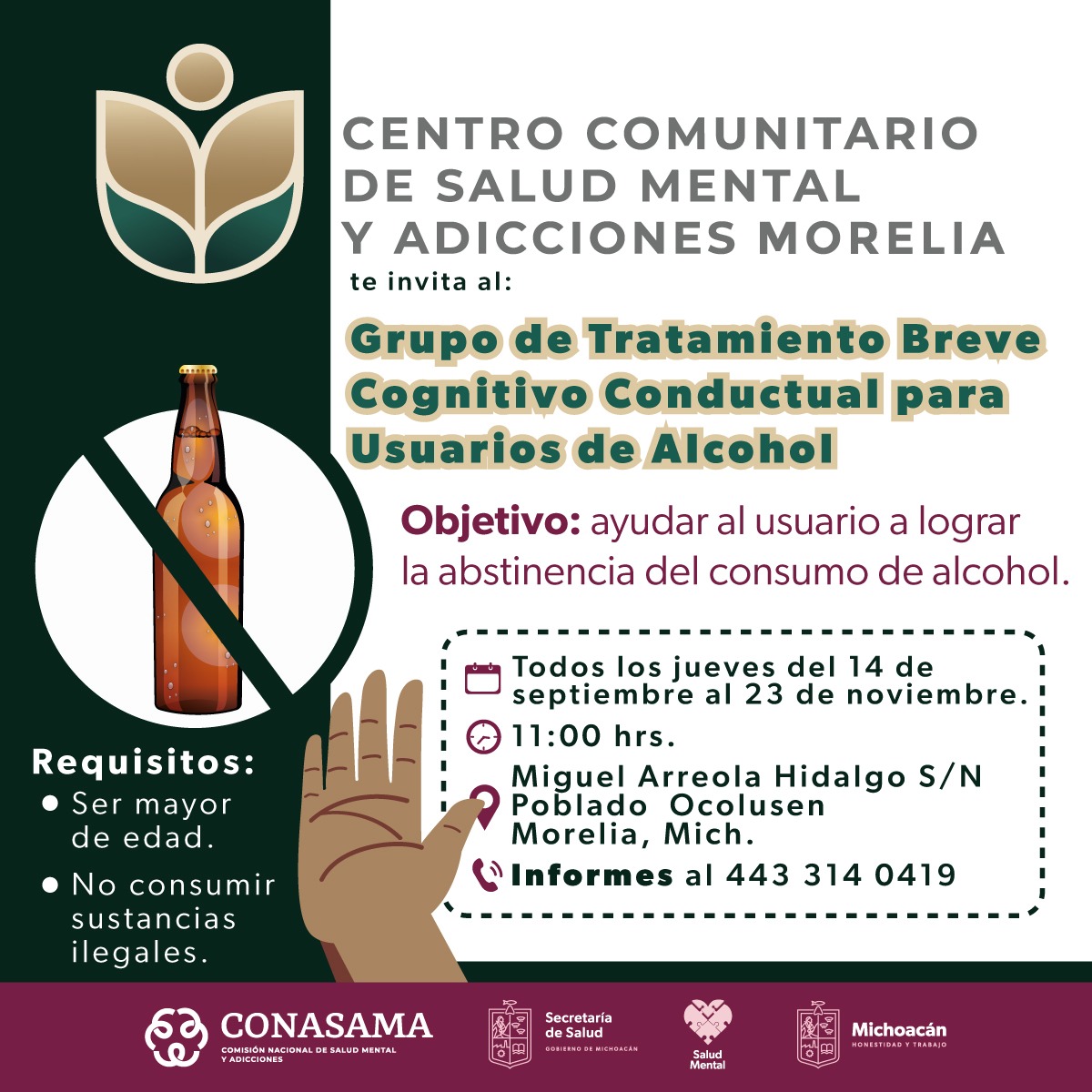 Morelia, Michoacán, a 08 de septiembre de 2023.- Para ayudar a la población a superar la adicción al alcohol y el tabaco, la Secretaría de Salud de Michoacán (SSM), a través de la Dirección de Salud Mental, ... Leer más >>