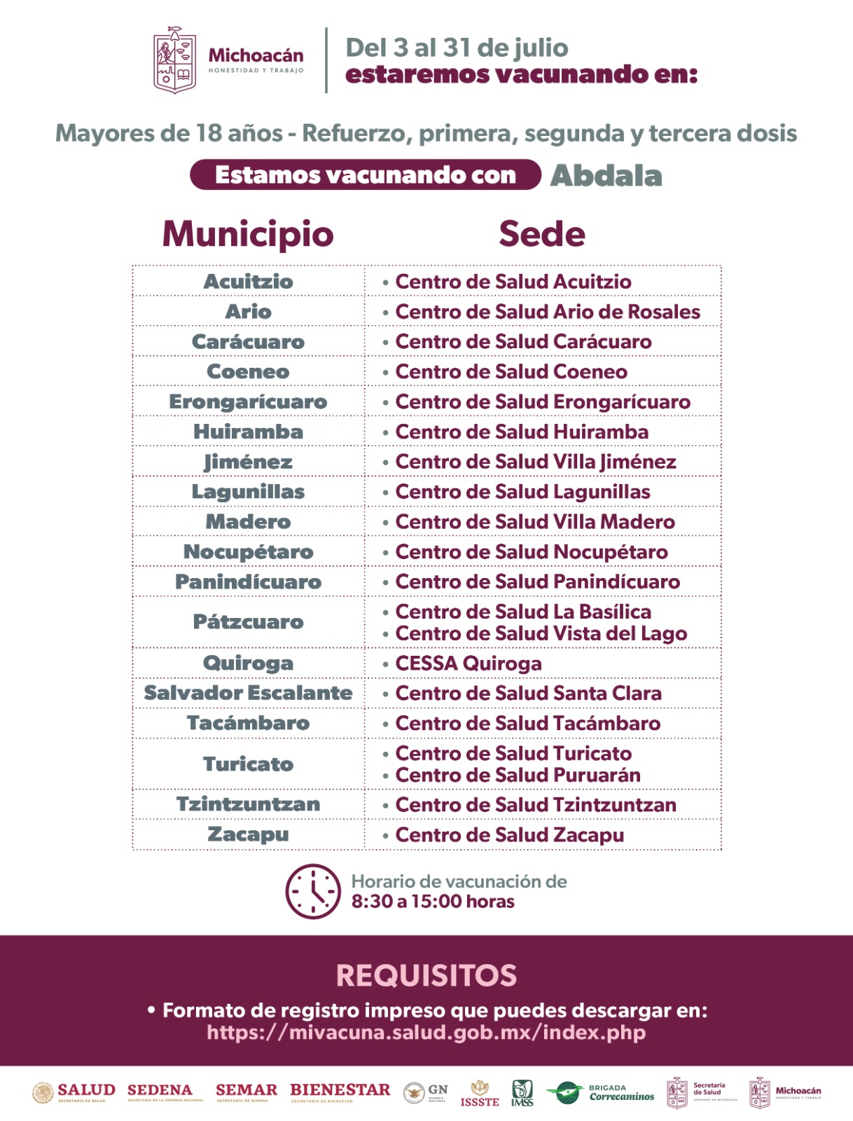 SSM anuncia vacunación COVID-19 en 68 municipios de Michoacán
