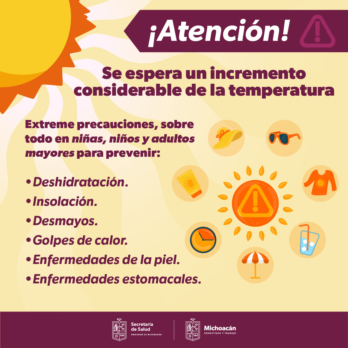 Morelia, Michoacán, a 21 de junio de 2023.- La corresponsabilidad ciudadana es el aliado primordial para prevenir golpes de calor, deshidratación e insolación, destacó la Secretaría de Salud de Michoacán (SSM) ... Leer más >>