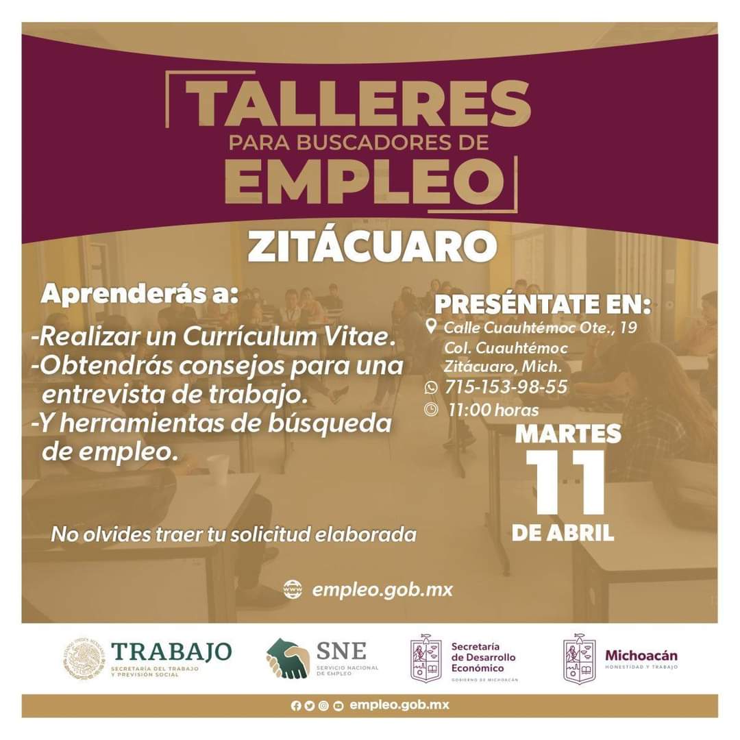 Habrá talleres para buscadores de empleo en 5 municipios de Michoacán