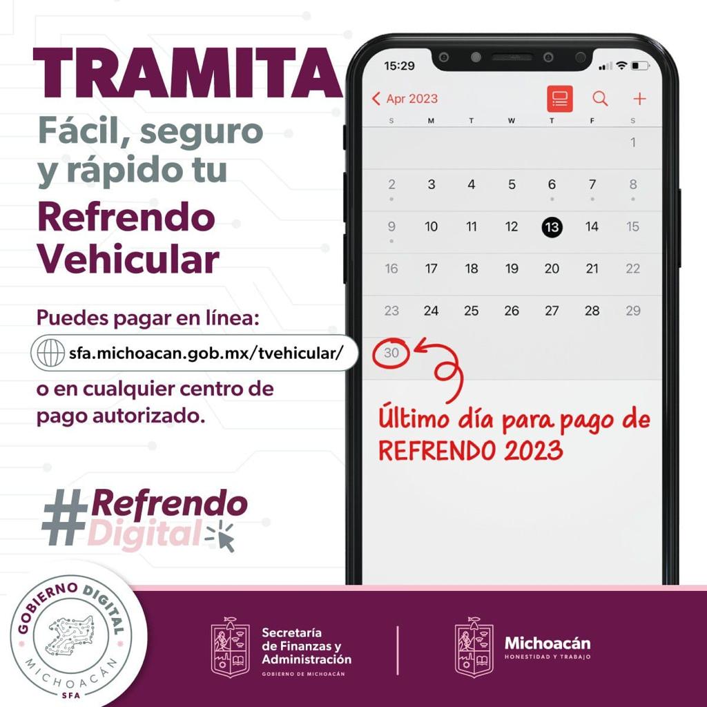 Morelia, Michoacán, a 18 de abril de 2023.- Hasta el momento, 580 mil propietarios de vehículos han pagado su refrendo digital, cifra que sin duda aumentará significativamente en el lapso de las siguientes dos semanas por ser el 3 ... Leer más >>