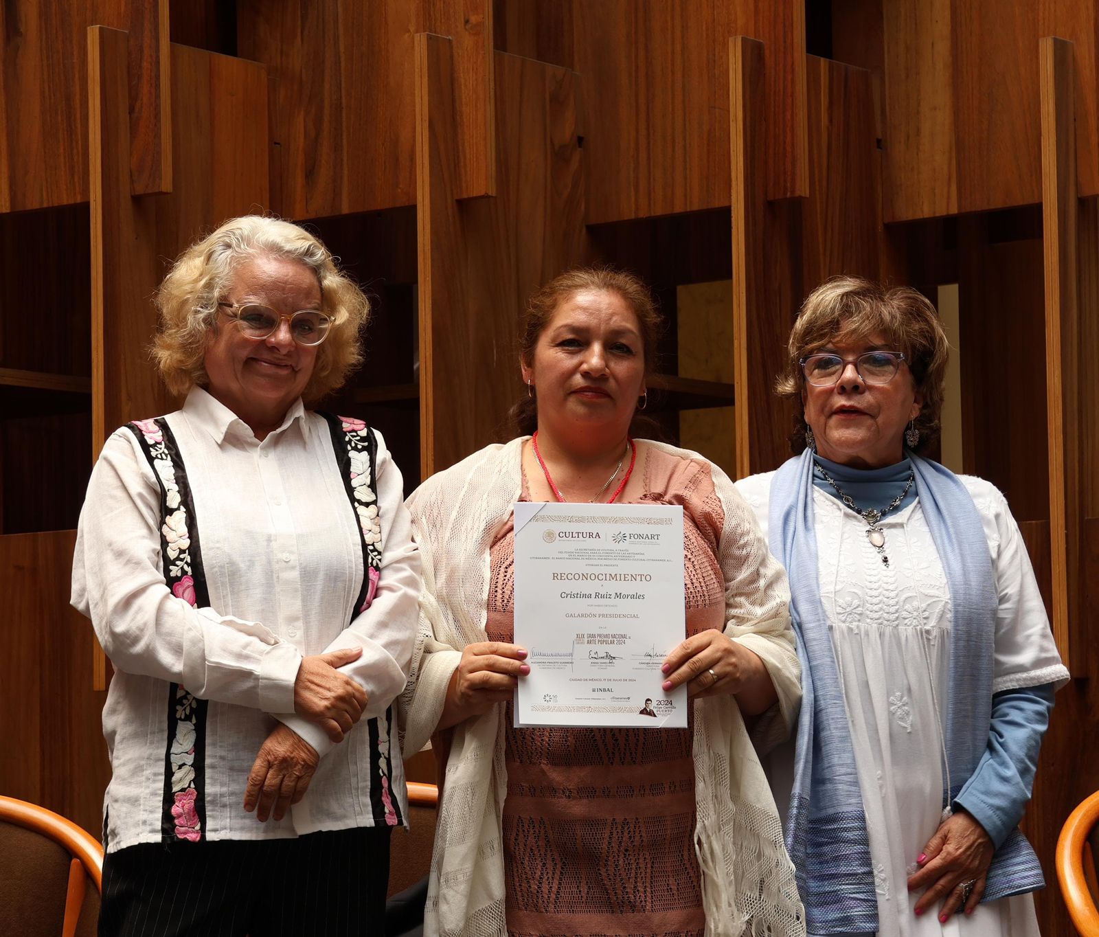 Artesana michoacana recibe máximo galardón nacional de arte popular