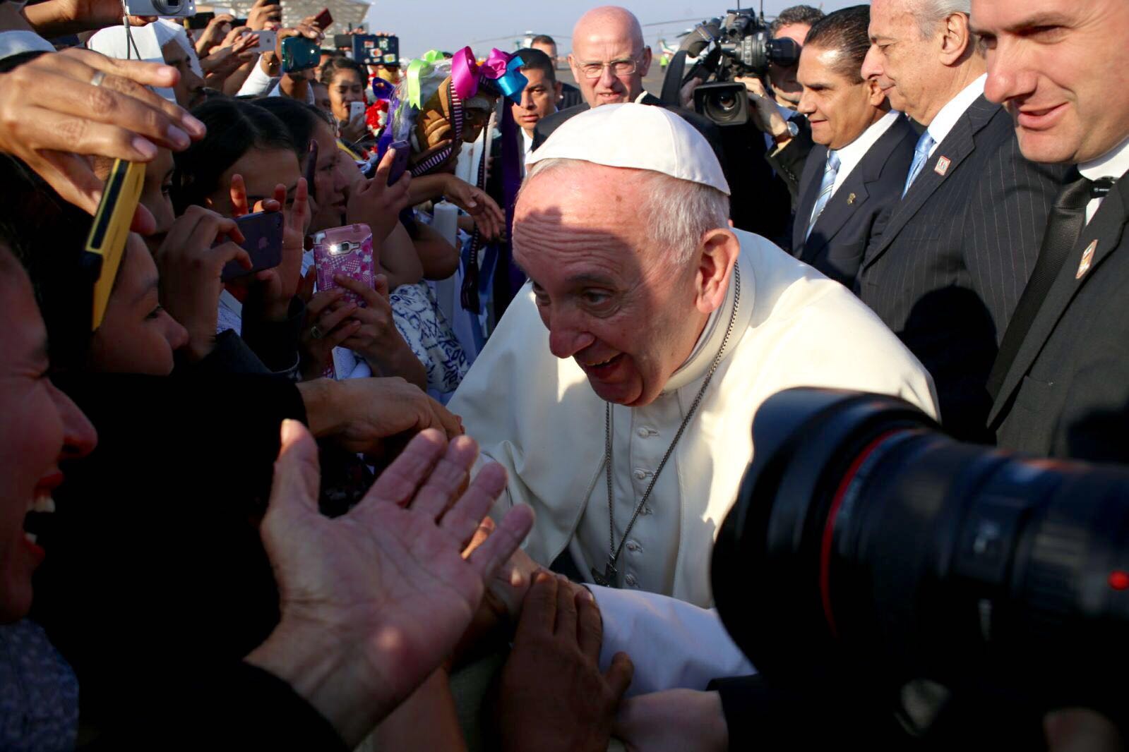 Papa recorrer el estadio, el Papa se sienta en un pequeño cochecito de golf. En él, al lado del Papa, el cardenal de Morelia, Suárez Inda, uno de los prelados mexicanos con mayor sintonía con Francisco.