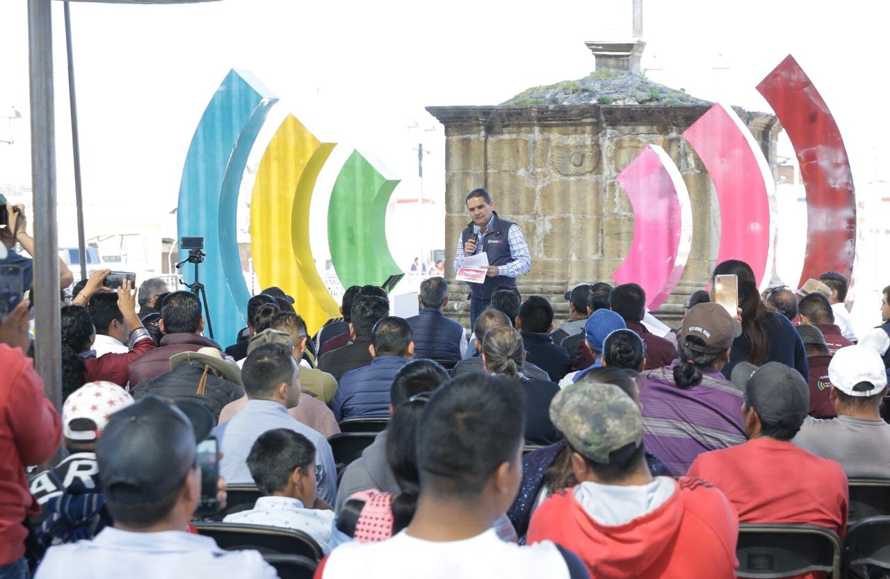 Nurío, municipio de Paracho, Michoacán, 14 de diciembre de 2019.- Una plaza totalmente rehabilitada y convertida en un espacio digno de recreación y cultura, entregó el Gobernador de Michoacán, Silvano Aureoles Conejo a 3 mil 500 habitantes de esta comunidad, ubicada en la Meseta Purépecha, quienes aseguraron que ahora cuentan con la plaza más bonita de la región.
