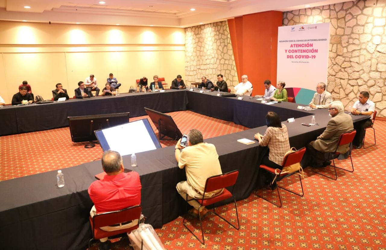 Al sostener una reunión con las y los integrantes del Consejo Interreligioso de Michoacán para dar atención y contención del COVID-19, el encargado de la política interna conminó a los jerarcas religiosos a valorar las medidas a tomar de acuerdo con la información proporcionada por las instancias gubernamentales.