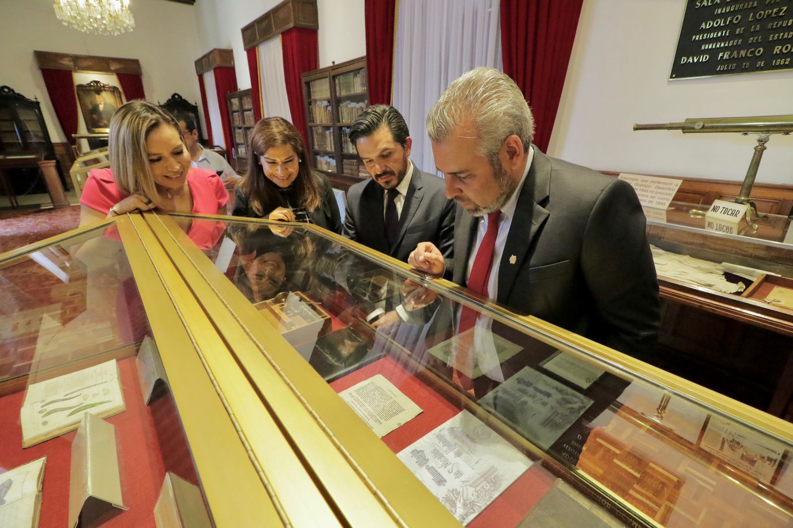 Al finalizar, el gobernador hizo un recorrido por las instalaciones del Colegio de San Nicolás para mostrar al director del IMSS, el acervo histórico de la biblioteca y sala de Melchor Ocampo.